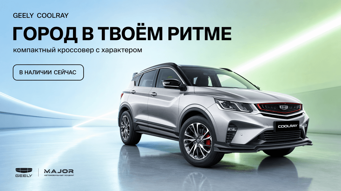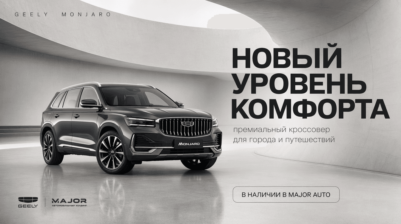 Developed a series of premium advertising visuals for Geely, created for Major Auto dealership in Russia. The project focused on translating the brand’s positioning into high-end campaign imagery — combining clean automotive aesthetics with strong lighting, minimal environments, and precise typography. Each visual was built around a specific model, highlighting its character through composition, color, and atmosphere — from dynamic performance-focused scenes to calm, architectural setups. Special attention was given to consistency across the series: unified grid, typography system, logo placement, and lighting direction to ensure a cohesive campaign language suitable for both digital and offline placements. The result is a set of visuals that emphasize product presence, clarity, and premium perception aligned with modern automotive advertising standards.